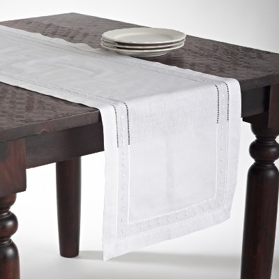 - white linen table runner