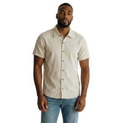 Burnside Men's Short Sleeve Linen Stripe Sport Shirt | Safari