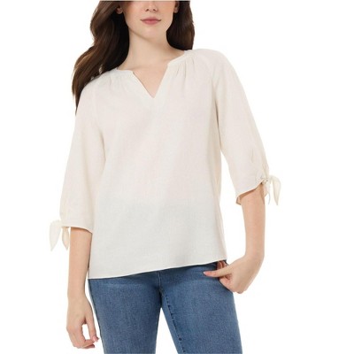 Jones New York Womens Solid Tie Sleeve Tunic Blouse
