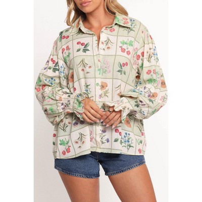 Women's Plus Size Serena Print Top - soft blue | CITY CHIC
