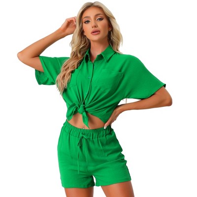 Allegra K Women's Shirt and Shorts Linen 2-Pieced Outfit Casual Set