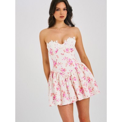 Miss CircleSamara Floral Drop Waist Linen Corset Puffy Mini Dress