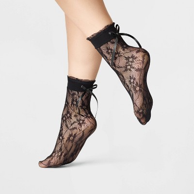 Women's Kimberly Anklet with Bow Socks - A New Day™ Black