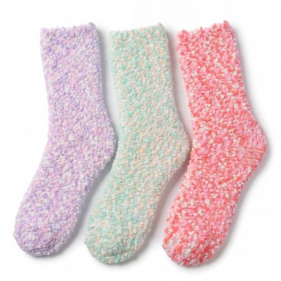 Tipi Toe Women's 3-Pairs Soft Fuzzy Anti-Skid Lavender Mist Patterned Crew Socks