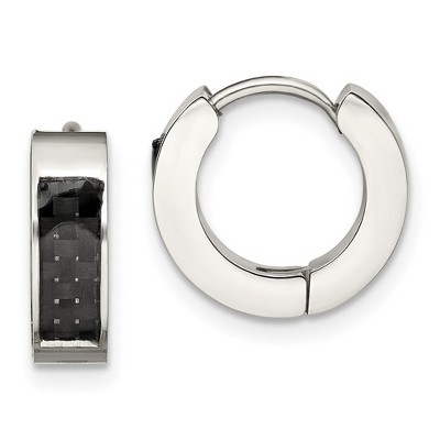 Chisel Stainless Steel Polished with Carbon Fiber Inlay 4mm Hinged Hoop Earrings