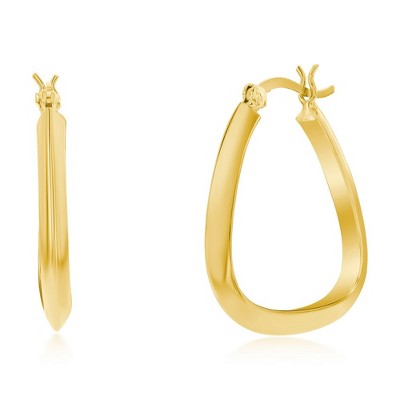 Bella Silver Sterling Silver 27mm Triangle-Shaped Hoop Earrings - Gold Plated - Gold