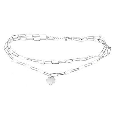 Unique Bargains Silver Tone Layered Necklaces Disc Pendant Paperclip Link Necklaces for Women 1PC