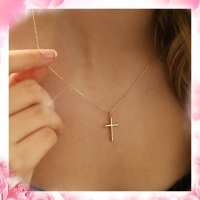Turandoss 14K Gold Cross Necklace for Women Girls - Danity Pendant Girls Necklaces Trendy, Birthday Valentine's Day Gifts for Women, 18+2.5in, Gold
