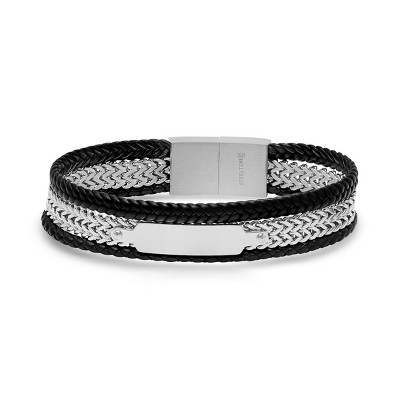 Chisel Stainless Steel Brushed Beaded Black Nylon 8.25" Bracelet