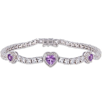 Bella Silver Sterling Silver, 7mm & 4mm Round CZ Tennis Bracelet - Silver - 7.25 Inch