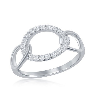Bella Silver Sterling Silver Oval CZ Linked Ring - Available Sizes: 7 , 6 , 8