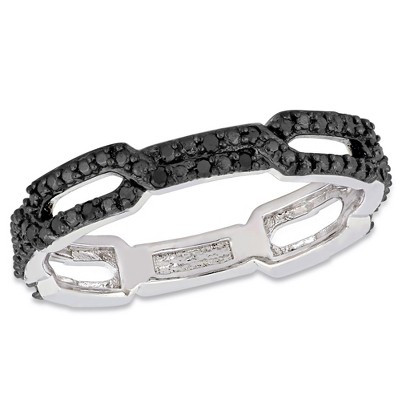 EVERLY JEWELRY | Sterling Silver Black Diamond Accent Link Ring Black Rhodium Plated