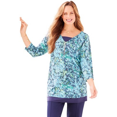 Woman Within No Iron Three-Quarter Sleeve Peachskin Shirt