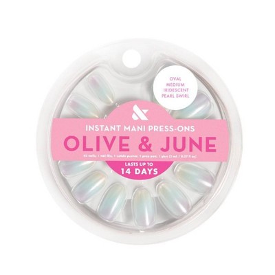 Olive & June Press-On Fake Nails - M Oval - Iridescent Pearl Swirl - 42ct