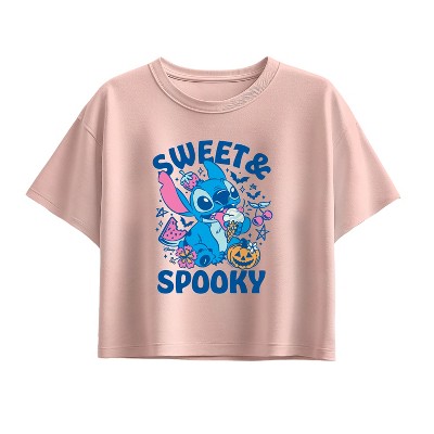 Girl's Lilo & Stitch I Like Gross Stuff Stitch Distressed Crop T-Shirt