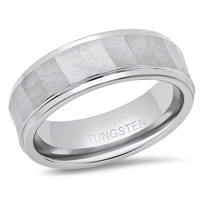 Crucible Brushed and Polished Ridged Edge Tungsten Carbide Ring (7mm Wide)