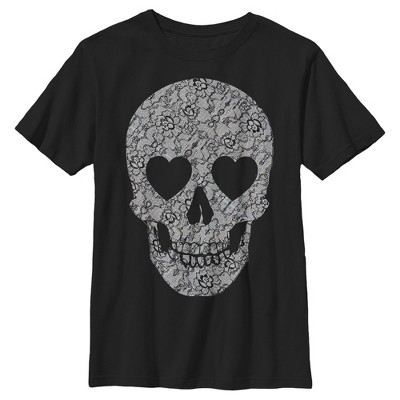 Boy's Lost Gods Lace Print Heart Skull T-Shirt