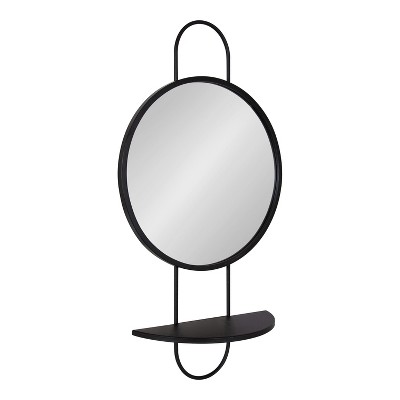 Metal 1 Shelf Wall Mirror Black - Olivia & May: Contemporary Round, No Assembly Required