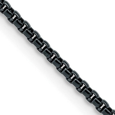 Black Bow Jewelry 2.5mm Blue/Grey Plated Stainless Steel Rounded Box Chain Necklace