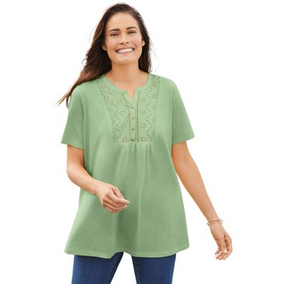 Woman Within Short-Sleeve Cold-Shoulder Tee