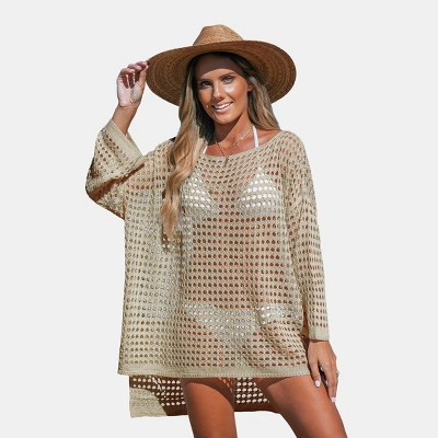 Women's Oversized Boat Neck Cut-Out Cover-Up - Cupshe