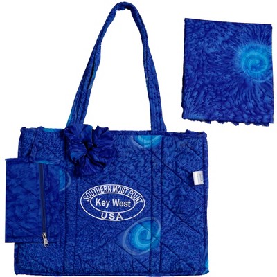 LA LEELA Women's Summer Water Resistant Pool Tote Bag with Matching Beachwear Holiday Sarong Wrap One Size Blue Tie Dye Design