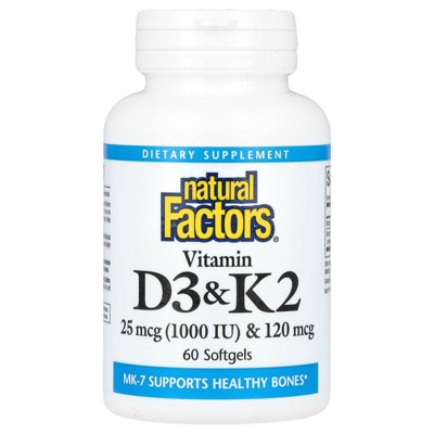 Natural Factors Vitamin D3 & K2, 25 mcg (1,000 IU) & 120 mcg, 60 Softgels