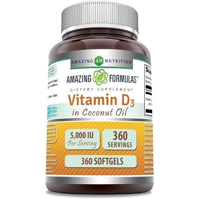 Amazing Formulas Vitamin D3 with Organic Coconut Oil 5000 IU 360 Softgels