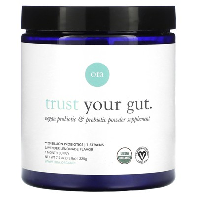 Ora Trust Your Gut, Vegan Probiotic & Prebiotic Powder, Lavender Lemonade, 20 Billion, 7.9 oz (225 g)