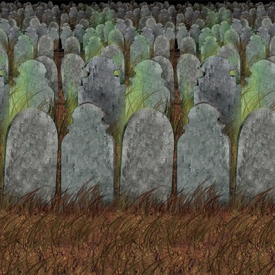 Beistle Graveyard Backdrop - 4 ft x 30 ft - Gray