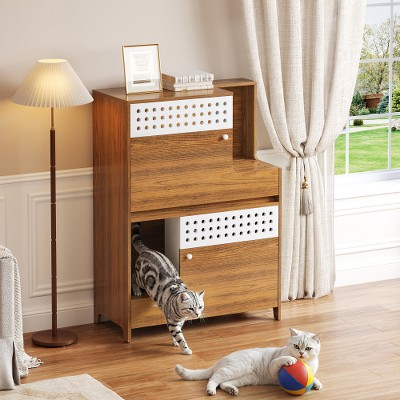 Ridstar 31.5 in. W 2-Piece Modern 2-in-1 Enclosed Litter Pan with Storage for 2 Medium & Small Cats-Natural