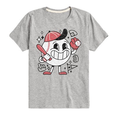 Boys' - Instant Message - Retro Smiling Baseball Mascot Short Sleeve Graphic T-Shirt