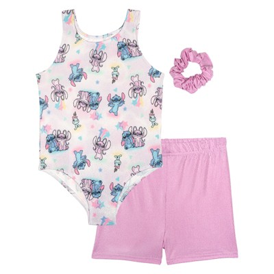 Disney Princess The Little Mermaid Ariel Gymnastics Leotard, Shorts and Scrunchie 3 Piece Outfit Set Little Kid to Big Kid