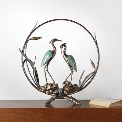 SPI Home Heron Romantic Sculpture – Elegant Bronze Finish Coastal Bird Statue, 26.5" Tall Metal Garden or Indoor Accent