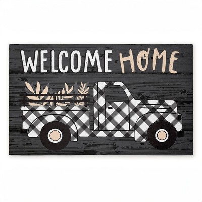 HomeRoots 24" X 36" Brown Black And White Floral Welcome Outdoor Coir Door Mat