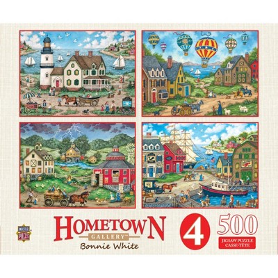 MasterPieces 500 Piece Jigsaw Puzzle - Hometown Gallery 4-Pack Americana Folk Art Set