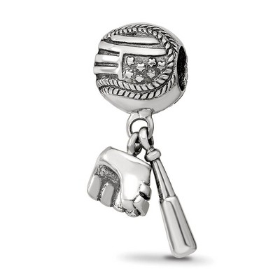 Black Bow Jewelry Sterling Silver Baseball, Bat and Glove Dangle Bead Charm