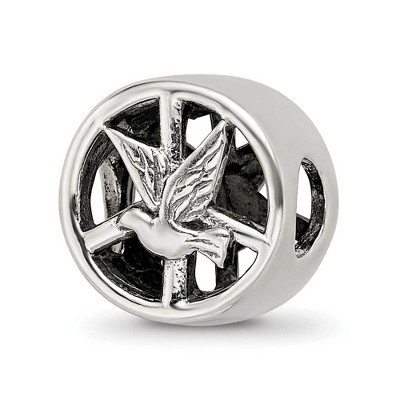 Black Bow Jewelry Dove & Peace Sign Cylinder Bead Charm in Antiqued Sterling Silver