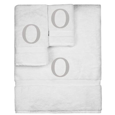 BC BARE COTTON Monogrammed Towel Set, Personalized Gift, Set of 3 - White - Silver Block