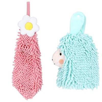REGALWOVEN Soft Absorbent Cute Fuzzy Hanging Decorative Bathroom Chenille Hand Towel 6" x 15"/7" x 7" 2 Packs