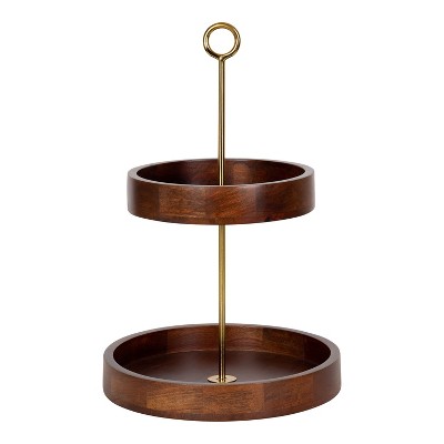 Dexmalle Round Wooden Pedestal Tray with Black Detailing and Sculptural Stand