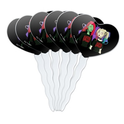 Harley Quinn Animated Series Harley and Ivy Heart Love Cupcake Picks Toppers Decoration Set of 6
