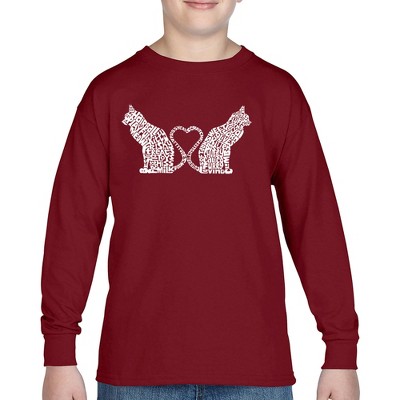 LA Pop Art Meow Heart - Boy's Word Art Long Sleeve T-Shirt