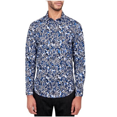 Society of Threads Mens Moisture Wicking Flocked Paisley Button Up Shirt