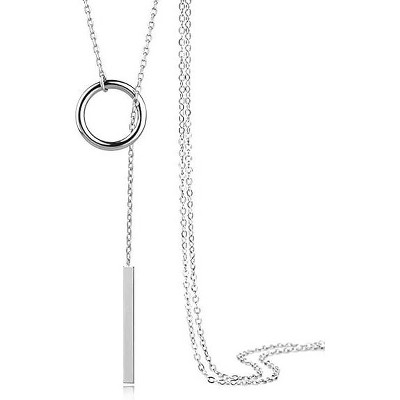 Sterling Silver Round Stick Cross Bar Y Pendant Necklace, Long Tassel Sweater Chain for Women