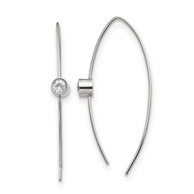 Chisel Stainless Steel Polished CZ Threader Dangle Earrings