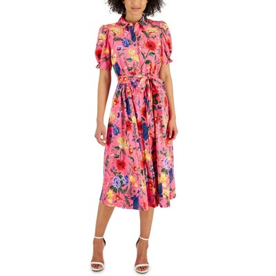 Anne Klein Womens Puff Sleeve Floral Shirt Dress