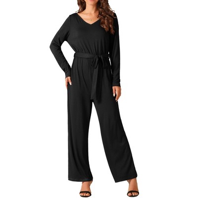 NY Collection Womens Belted Wide Leg Jumpsuit