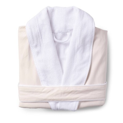 S/M Platinum Bath Robe Blush - Cassadecor: Cotton Terry, Long Sleeve, V Neck, Front Tie Closure