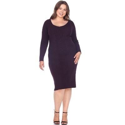 Women's Plus Size Long Sleeve Destiny Sweater Dress - White Mark